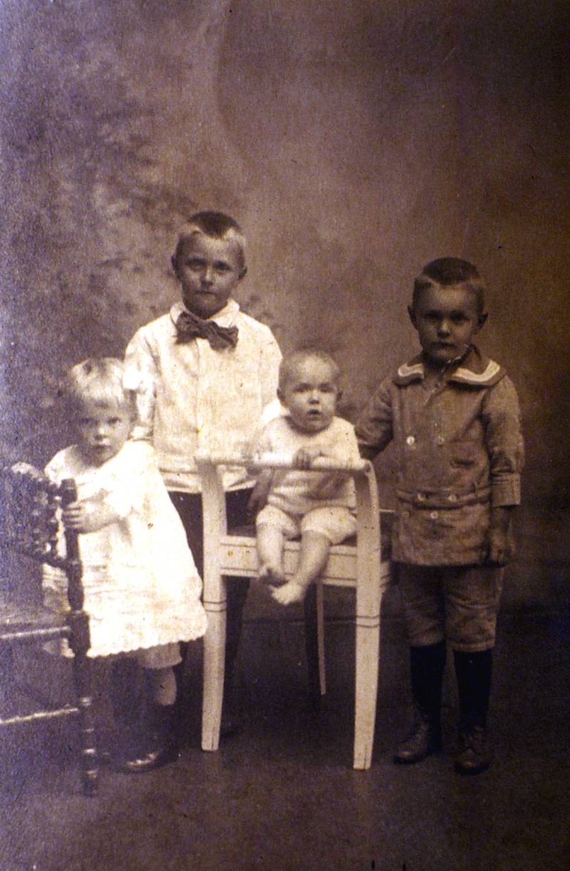 1920. Deze foto heeft Kynhout gekregen van Pier de Jong, de buurjongen van de familie Lourens. Dit zijn de vier kinderen van de familie Lourens.