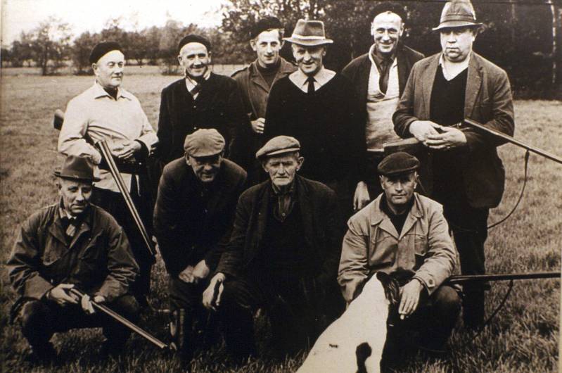Oktober1961. De jagersvereniging tijdens een jachtpartij. (gegevens zijn van Geert de Leeuw). Voor van links naar rechts: Gabe de Vries, ?? de jong, Anne Koen en Klaas van der Weg.