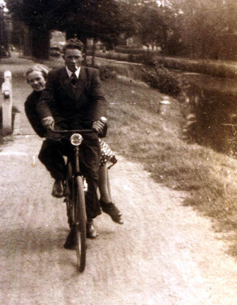 Deze foto is genomen rond 1965. Johannes en Harmke Vrind op de fiets langs de vaart in Bovenknipe. Ze woonden op Dominee Veenweg 177.