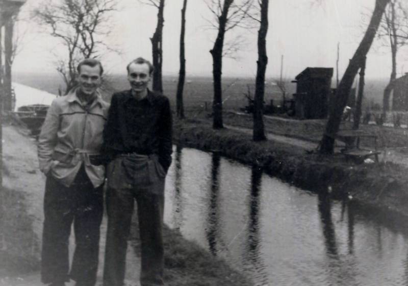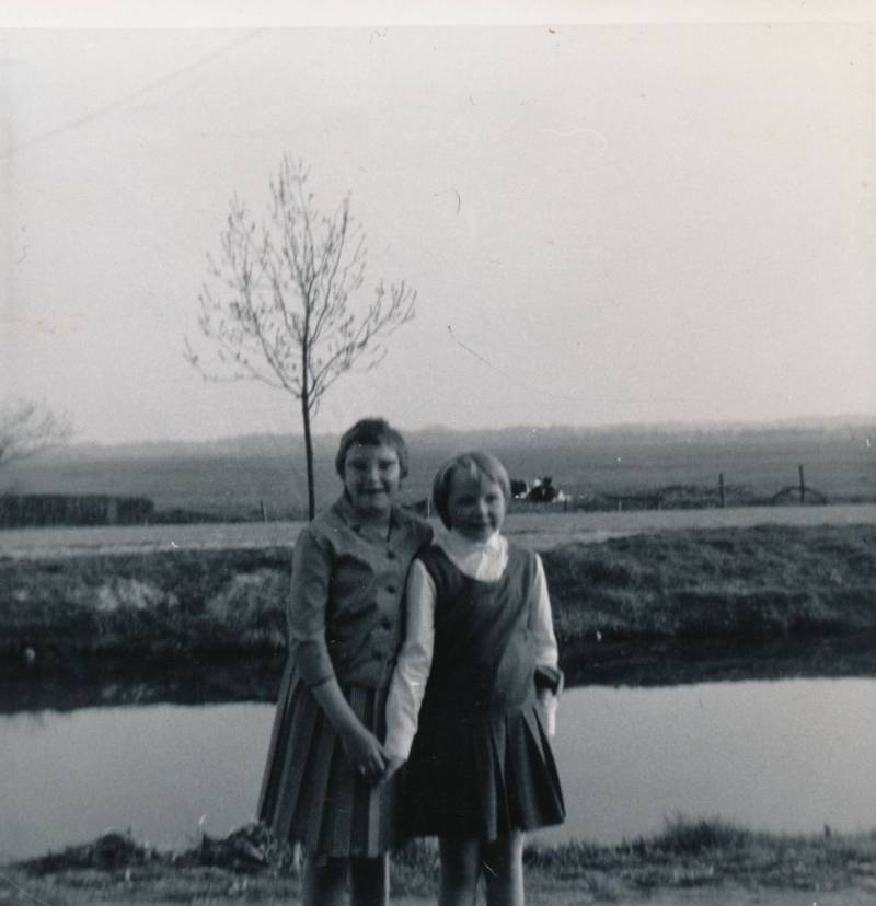 Deze foto is genomen aan de Compagnonsvaart voor de boerderij van Kerstma. Links: Nienke Niezing ( Ds. Veenweg 57). Zij is de dochter van Tet, die met Doeke van der Brug getrouwd was. Rechts: Willie Trinks ( Ds. Veenweg 215).