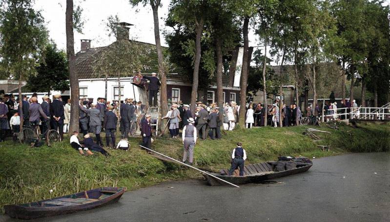 De foto is de ingekleurde versie van de zwart-wit foto, zoals die op 17 maart 2020 in dorpskrant De Compagnon verscheen.
